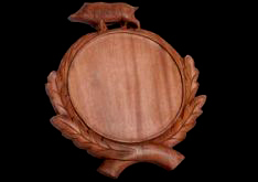 Håndskåret og udført smukt i mahogni, ligeledes med rigtig